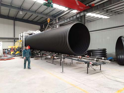HDPE树脂为原料,添加各种助剂,经塑料成型设备加工挤出,该种管材是由波纹状的结构壁外层与光滑的实心内壁复合而成的新型管材。